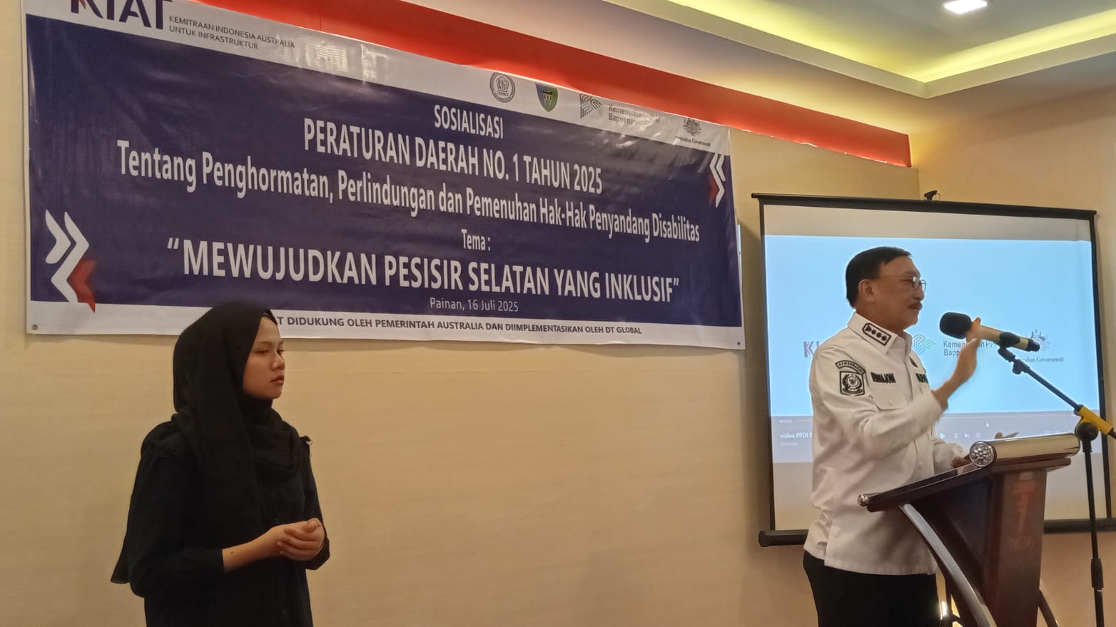 Hadir dalam acara tersebut sejumlah pejabat terkemuka, di antaranya Sekda Pessel Mawardi Roska, Asisten Daerah Pessel, serta Kepala Dinas Sosial, Pemberdayaan Perempuan, dan Perlindungan Anak (Dinsos PPrPA) Junaidi, S.Kom, ME. Selain itu, sejumlah penyandang disabilitas dan tamu undangan lainnya turut hadir untuk mendalami lebih jauh mengenai kebijakan dan implementasi Perda yang bertujuan memberikan ruang yang lebih inklusif bagi penyandang disabilitas di Pessel.